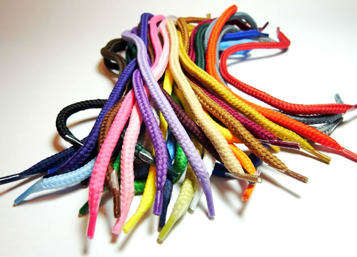 實心扁帶、空心扁帶、圓帶、橢圓帶、三角帶、四方帶、葫蘆帶、珍珠帶、花邊帶、凹凸帶等等。動鞋帶、戶外鞋帶、板鞋鞋帶、皮鞋鞋帶、安全防滑脫的紐扣鞋帶、迷你型的蝴蝶帶等等。